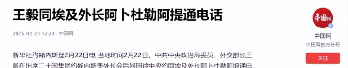 中国网:2025-02-23:王毅同埃及外长阿卜杜勒阿提通电话